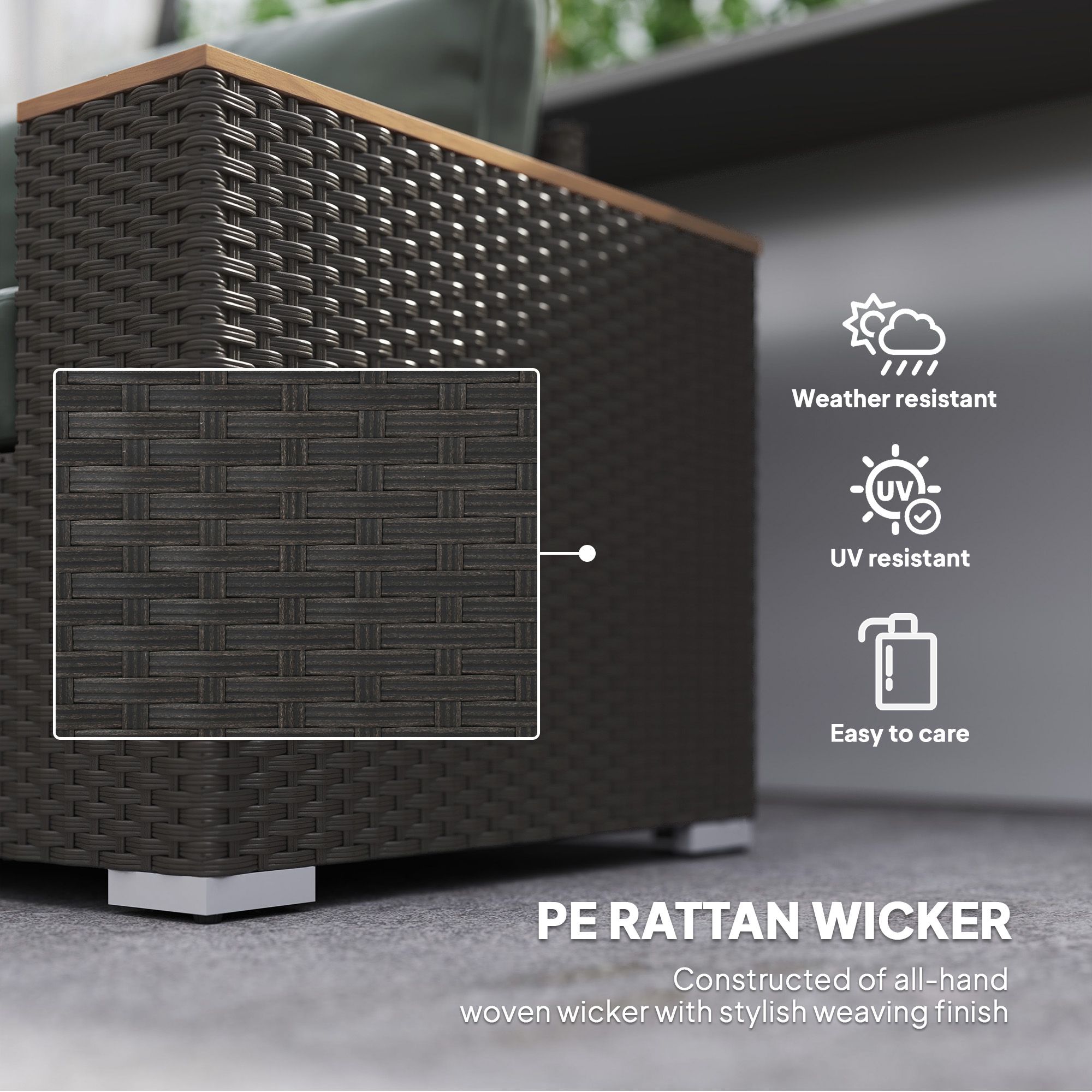 - - Water-safe handwoven PE rattan and galvanized steel frame