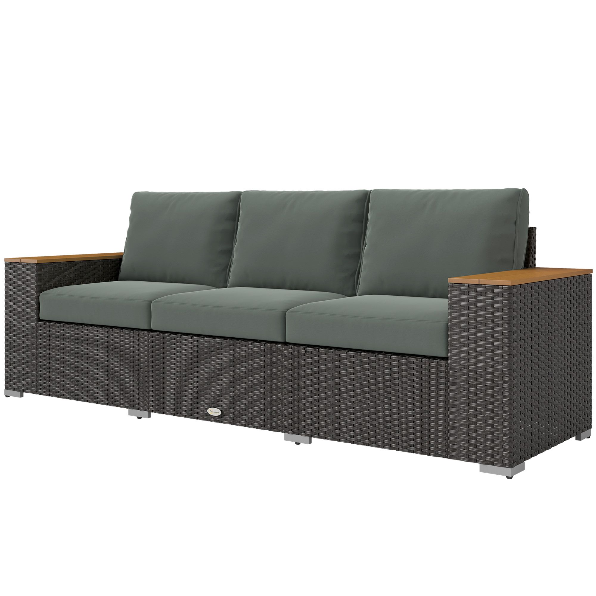 Who says a couch can't go outside? Make your outdoor space as comfy as indoors with an Outsunny 3-seat wicker outdoor couch. This sofa is soft and cushioned with plush padding on the seats and backs. It's hand-woven, making it an excellent accent piece for your porch, patio, poolside, or garden. Made to endure outdoor conditions, it has PE rattan and a strong galvanized frame, letting it endure the outdoors easily. Invite over some friends. Get out and get comfy with an Outsunny rattan sofa.