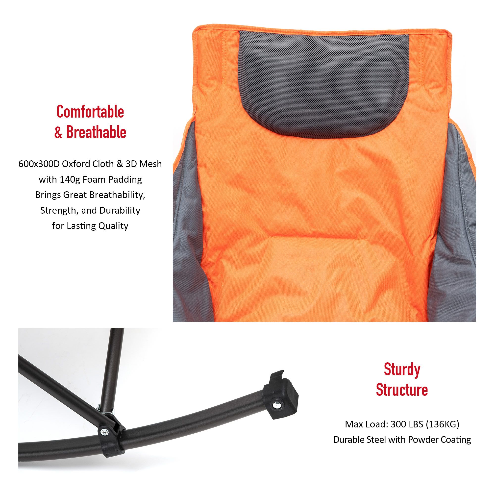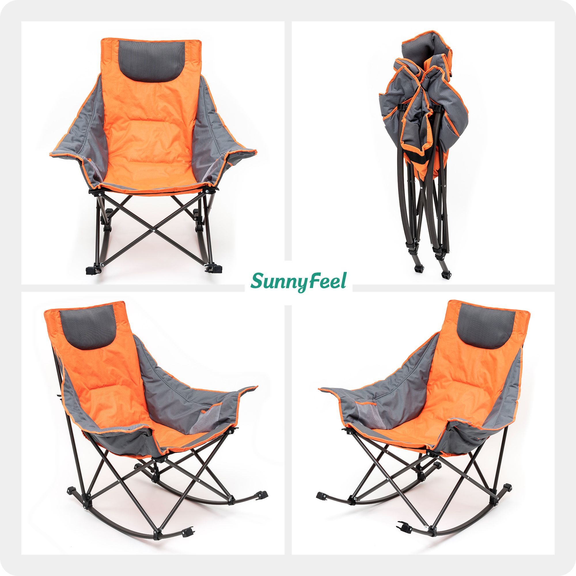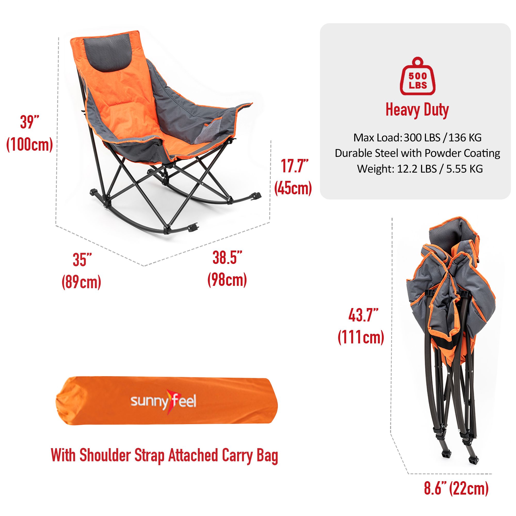 Extremely Comfy & Space Saving: The fully padded and comfy cushioned armrest, high back and comfy rocking camp chair seat provide you a comfortable seating experience. The smooth-rocking design helps you to relax and enjoy the breeze during your journey. The small folding size (43×9×7 inches) saves your room while not on duty.