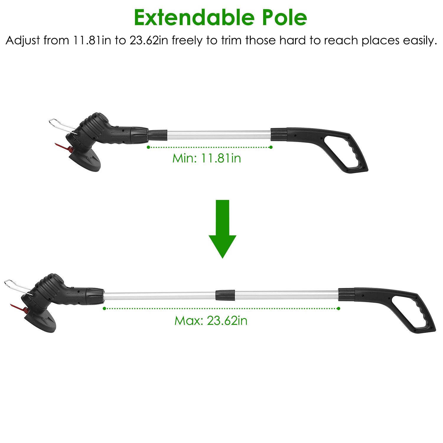 *Extendable Pole*:The pole can be adjusted from 11.81in to 23.62in freely,easily fit your different needs and trim those hard to reach corners. Big screw knob for easily securing stable length.