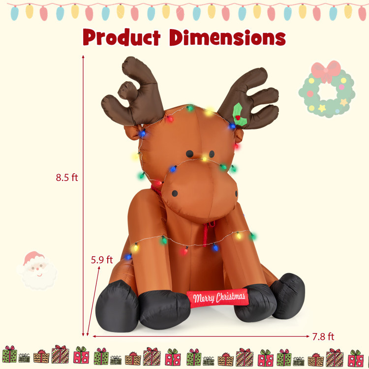 1.Festive Charm with Decorative Accents: This inflatable reindeer features a Merry Christmas banner and carefully arranged berry leaves, adding a traditional festive touch to your holiday decoration.