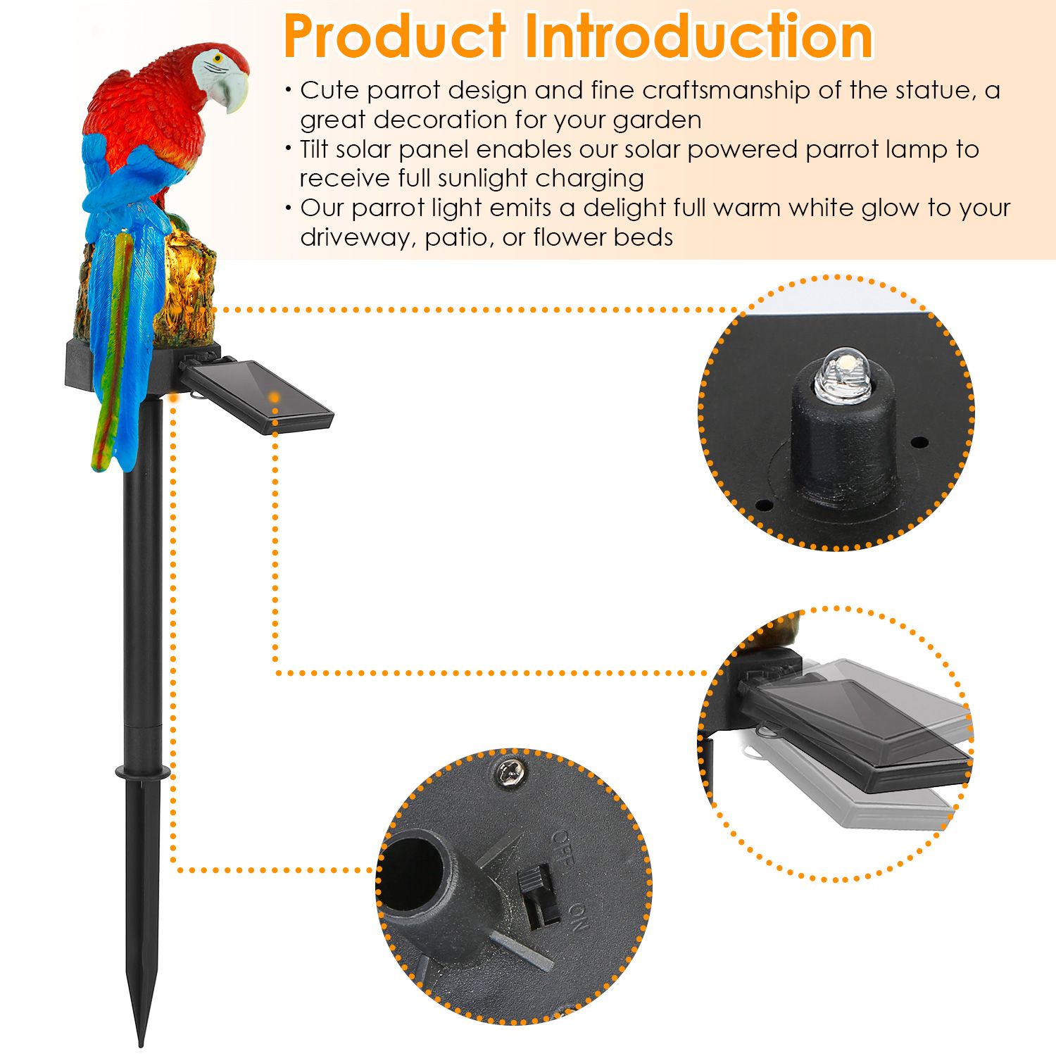 *Unique Parrot Design*:Cute parrot design,perfect for decorating your garden,lawn,pathway,patio,walkway,fence,backyard decoration etc.. Enjoy the fine craftsmanship of the statue during the daytime and appreciate the shining splendor of the lamp at night.