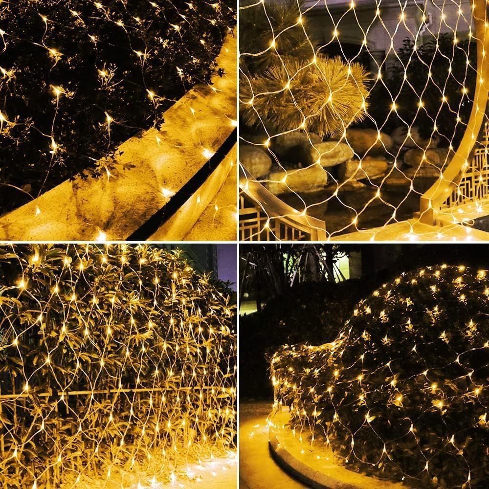 [Christmas Fairy Lights]Christmas fairy lights are an easy way to quickly illuminate large areas. Net lights have 192 LED cool white/warm white/multicolor. The size is 2m x 3m. They are very easy to unfold and don't get tangled. Place or hang the LED net lights on trees, bushes, grass or any other occasions decoration. The outdoor garden will create a very happy Christmas atmosphere[8 Lighting Modes]It has 8 modes including: combination, in waves, Sequential, Slow-glow, Chasing/flash, slow fade, twinkle/flash, and steady on. Easy to cover party, Halloween, Xmas, grassland, treetops, bushes, walls, hedges, shrubs, fences, windows, balcony, garden etc.[Battery Operated LED Indoor String Lights]This Christmas lights powered by 3 AA batteries (not included), low voltage and will not overheat, cool to touch; the small battery pack is easy to hide and makes these lights extremely portable[IP44 Waterproof]Our net lights are IP44 waterproof. Wire and led are waterproof, but do not immerse the battery case in water, battery box not waterproof. They are suitable for both indoor and outdoor use. This garden net lights will give off a new light world for you're around.[Widely Application]amazing LED fairy garden lights can be used in indoor/Outdoor decorating indoor, outdoor, patios, gardens, outdoors, backyard, courtyards, weddings, parties and porch or any place you want, very easy to create a festive holiday atmosphere.