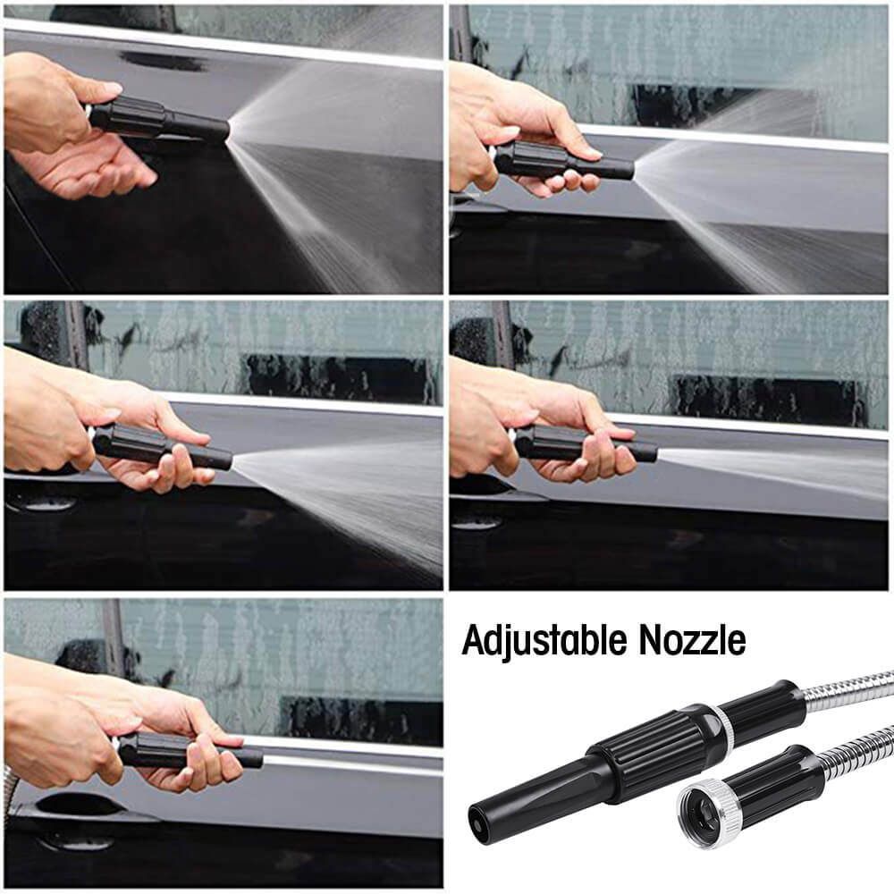 Made of 304 stainless steel, no corrosion, no rust, super light, no kink, also resistant to extreme weather conditions. Install 3 rubber gaskets in the water pipe, waterproof and leak-proof. Small size, light weight, easy operation, adjustable flow, more suitable for all ages. Suitable for kids, teens, kids, adults, women, men, young, old and more. The garden hose can be used normally in summer, even in the Summer sun, it will not get hot. Cool hose gives you a better experience.